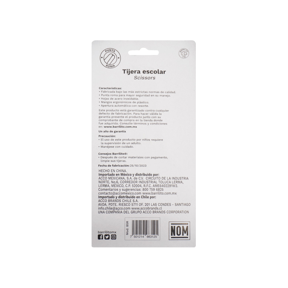 TIJERA ESCOLAR BARRILITO B5R PUNTA ROMA CON RESORTE